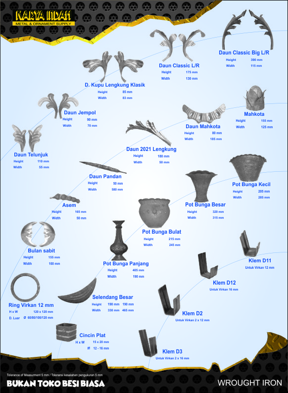 Toko besi lengkap dengan kebutuhan ornamen pagar dan kanopi. Tempatnya memang tidak seberapa tetlihat jelas tapi begitu anda masuk material besi, ornamen hiasan pagar, handle pintu besi sampai engsel dengan berbagai ukuran tersedia disini. Yang membuat toko besi ini berbeda ialah display produk yg di design seperti supermarket. Jadi anda bebas memilih produk yg anda sukai. Parkir tersedia cukup, karyawan yang ramah dan siap membantu kebutuhan anda untuk menemukan barang yg anda butuhkan merupakan nilai tersendiri.